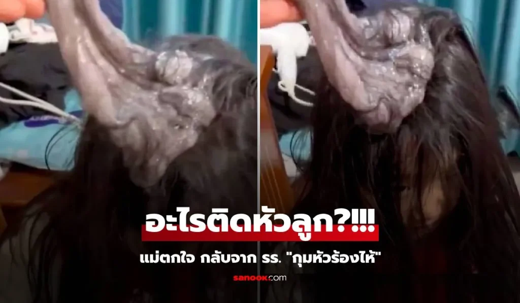 ตามที่คุณแม่เล่า วันก่อนลูกสาวกลับจากโรงเรียน มาถึงหน้าบ้านก็กอดแม่ร้องไห้อย่างหนัก ตอนแรกผู้เป็นแม่ไม่เข้าใจว่าเกิดอะไรขึ้น จนกระทั่งลูกสาวถอดหมวกออกและชี้ไปที่หัวของตัวเอง ก็ถึงกับตกใจเมื่อเห็นว่าเส้นผมมีวัตถุแปลกๆ ติดอยู่จนยุ่งเหยิง เป็นก้อนใหญ่ดูน่าประหลาดใจ